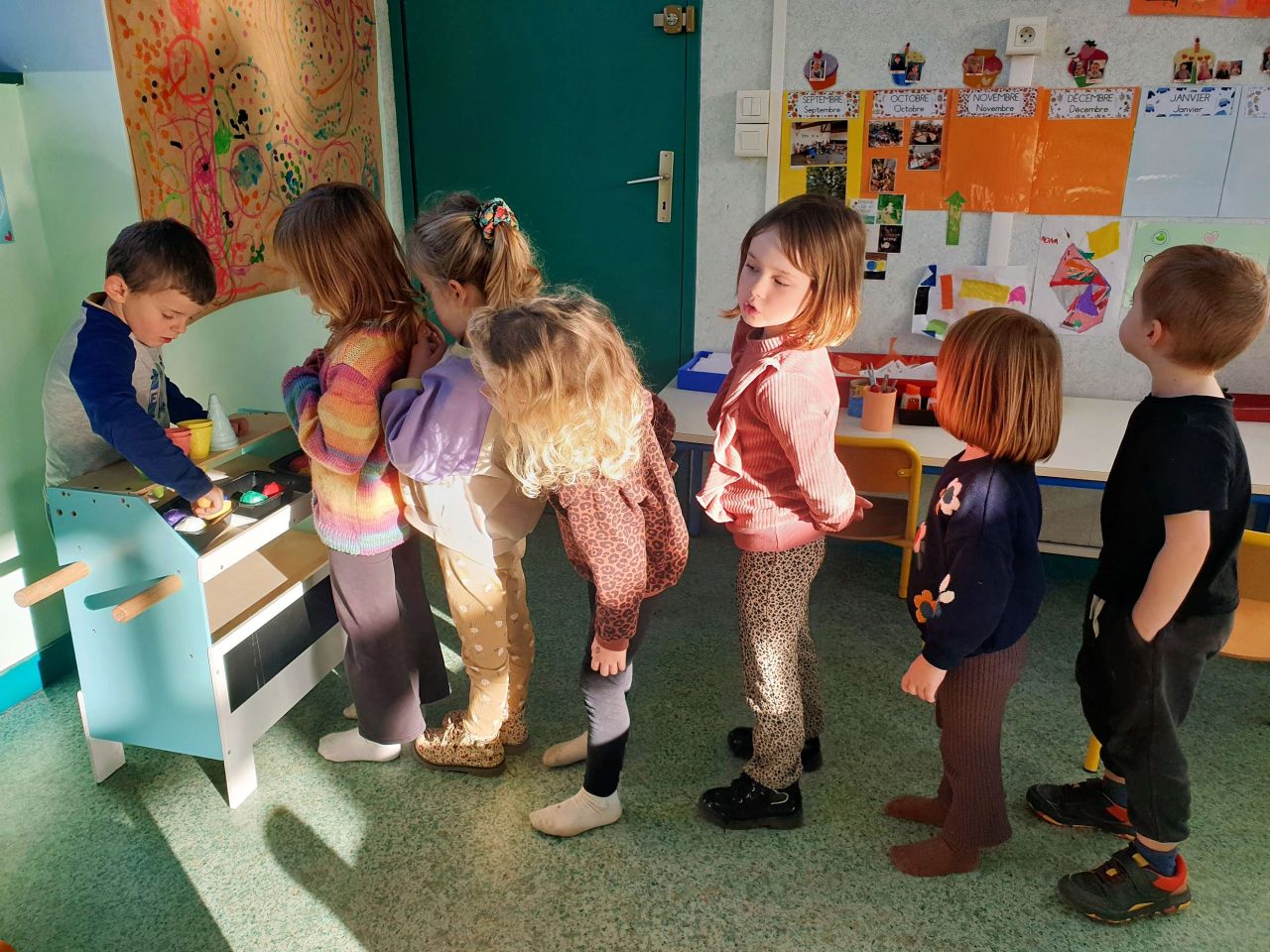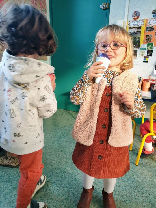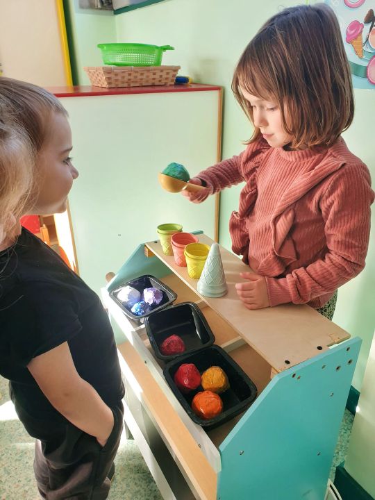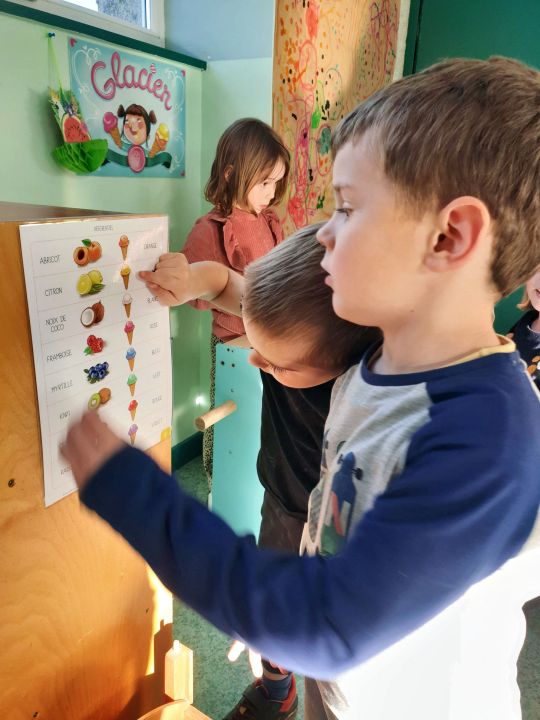Nous avons également découvert notre nouveau coin "glacier" qui nous permet de travailler en langage autour des formules de politesse, des couleurs, des fruits etc .. Les élèves sont ravis d'y jouer malgré les premières températures hivernales ;)
