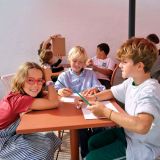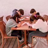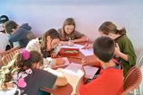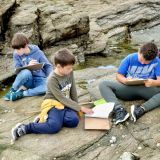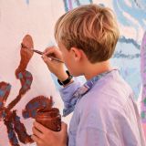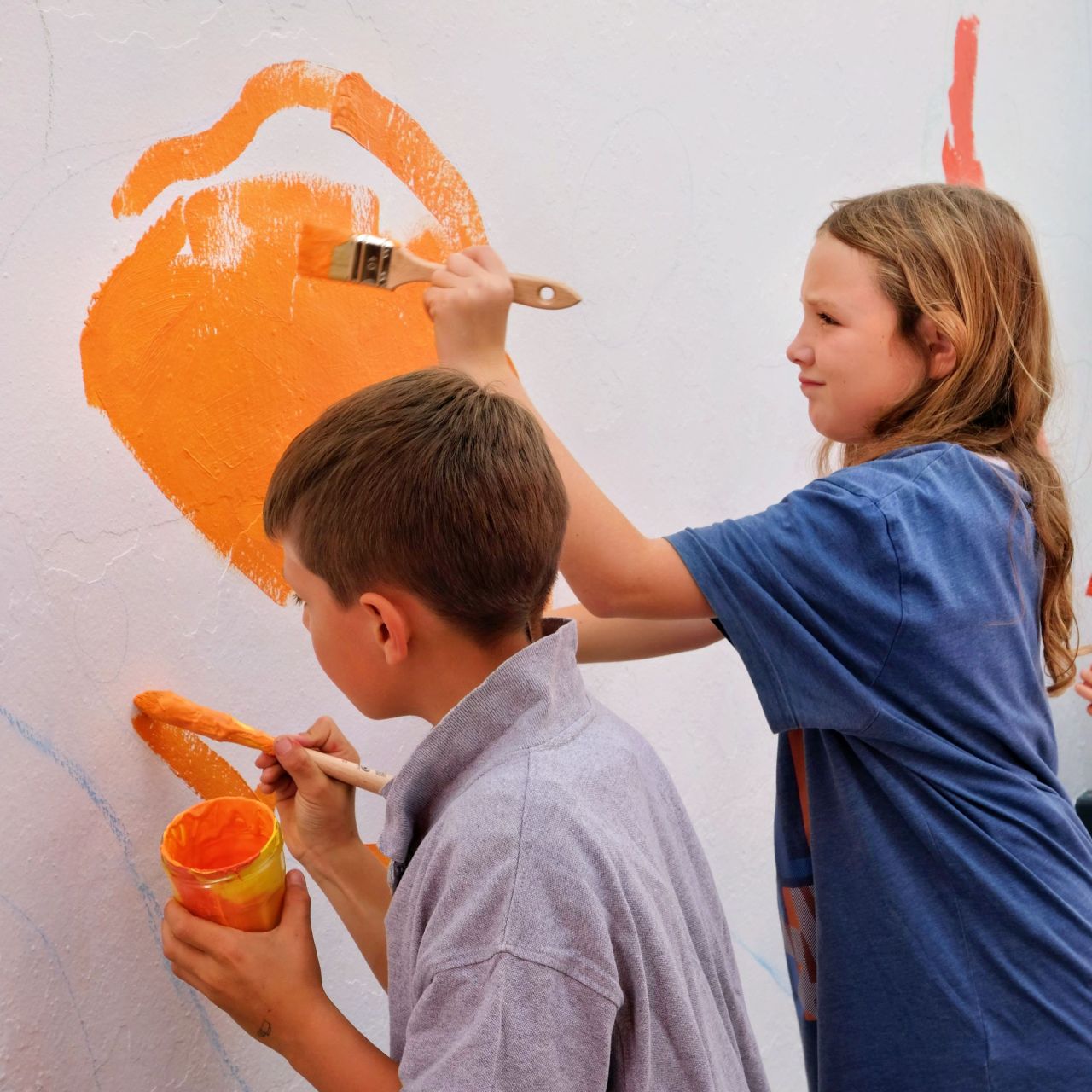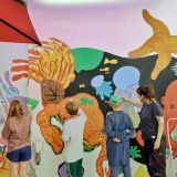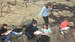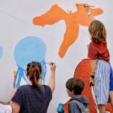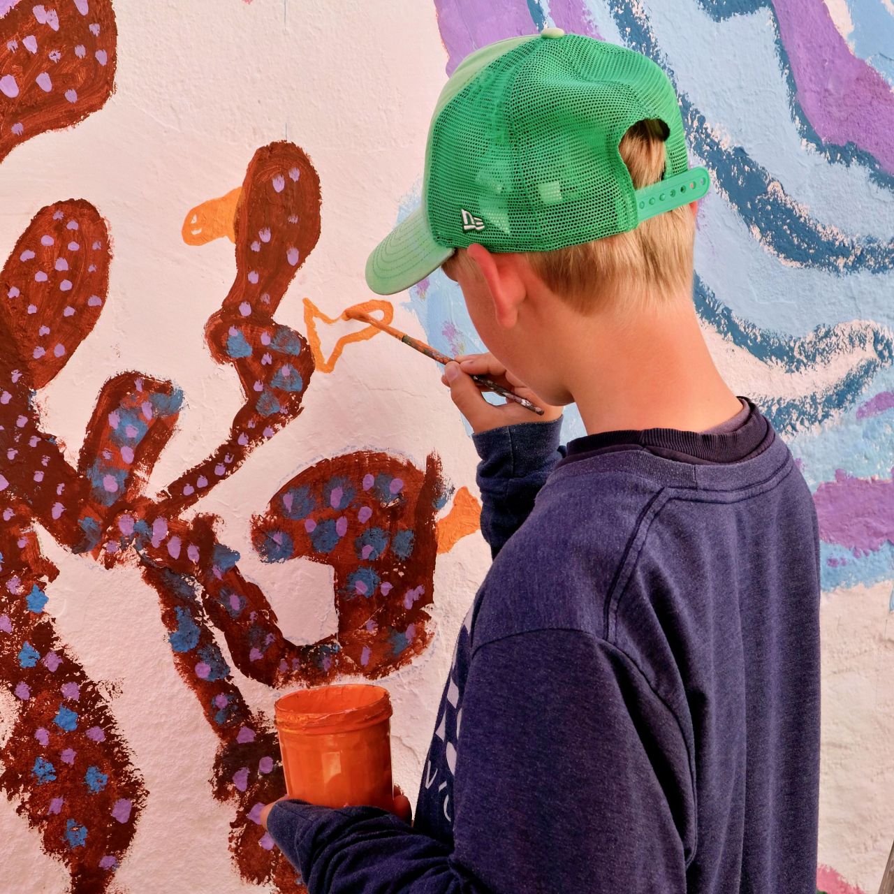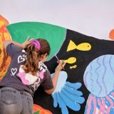 Les élèves de CM1 CM2 ont eu la chance de participer à la création d'une fresque avec l'illustratrice Anne Zeum en résidence à Groix grâce à l'association A La Ligne.