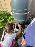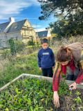 Dans un premier atelier, ils ont visité le jardin pédagogique, découvert ses différents espaces et éléments (le composteur, les cuves à eau, les bacs à légumes, le coin des plantes aromatiques, la serre).